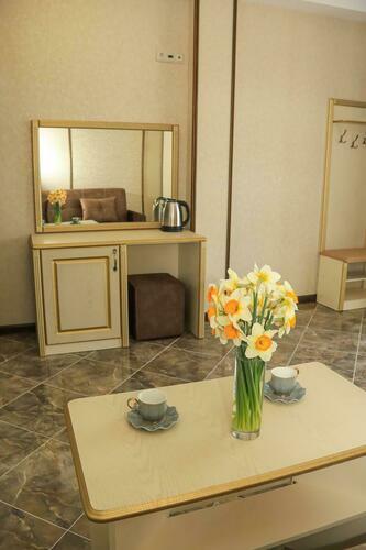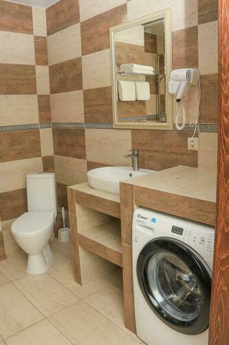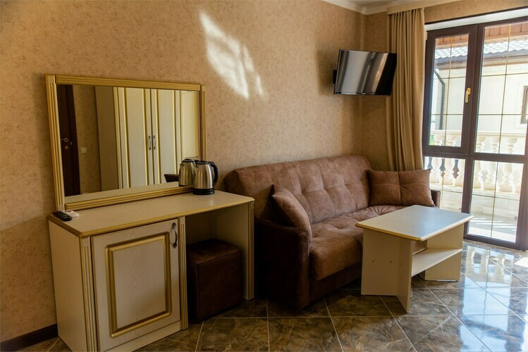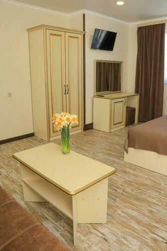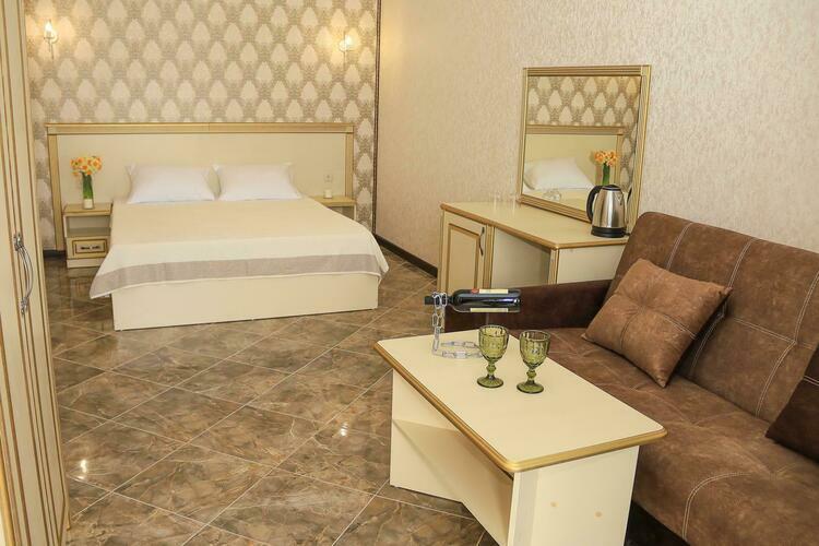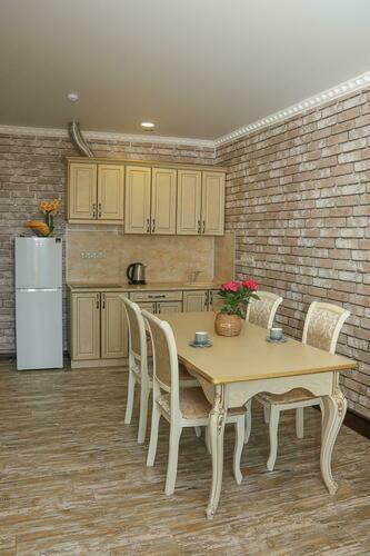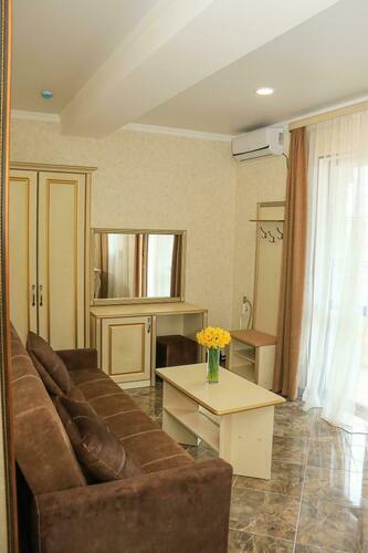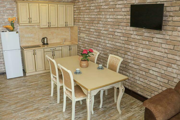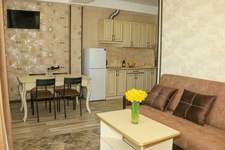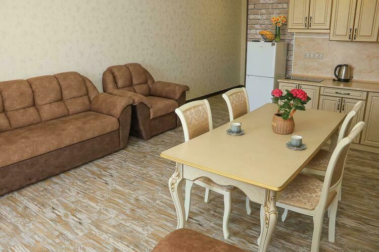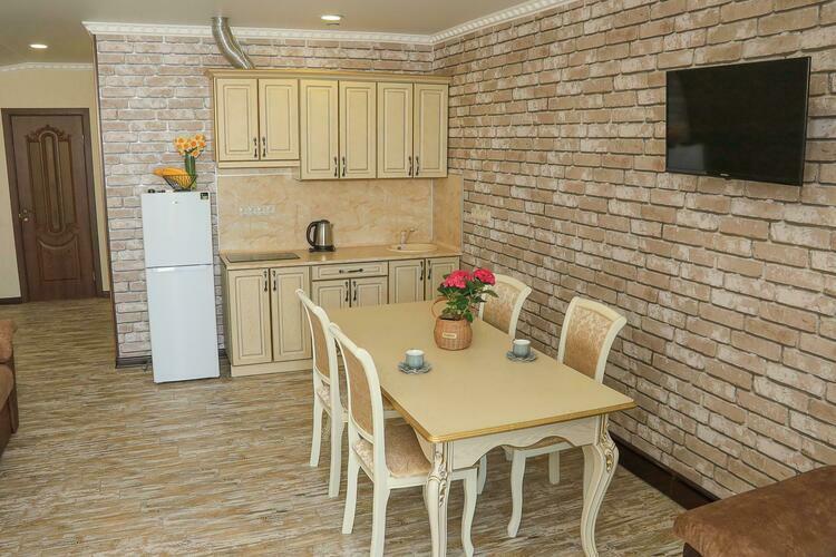 Уютный номер для размещения от 2 до 6 человек. Площадь номера от 64 до 70 м2. В спальне: одна большая кровать, раскладной диван, рабочая зона. В гостиной: раскладной диван, большая обеденная зона, кухня, холодильник, посуда, чайник, телевизор, шкаф. В ванной комнате: фен, душевая, туалет, комплект полотенец. Все номера оборудованы кондиционерами. В каждом номере нашего отеля работает бесплатный Wi-Fi. Утюг с гладильной доской – на каждом этаже.