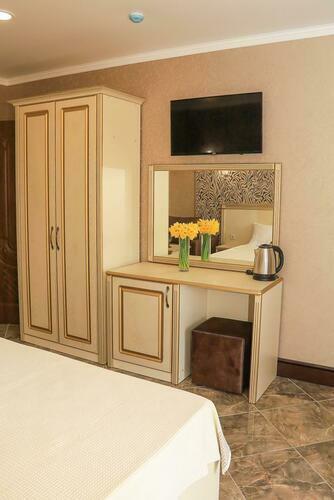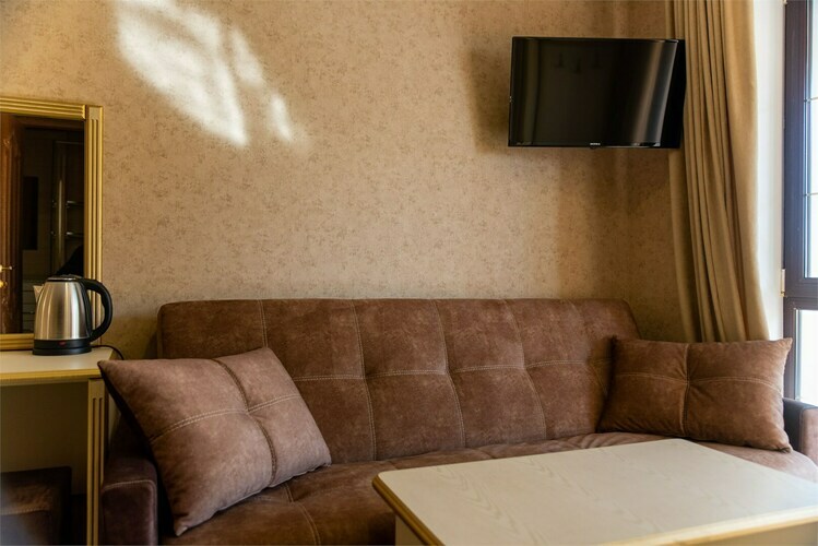 2-х местный однокомнатный улучшенный – одна большая кровать и раскладной диван.Уютный номер для размещения от 2 до 4 человек. Площадь номера от 20 до 24 м2. В комнате одна большая кровать и раскладной диван, рабочая зона, чайник, ТВ, кондиционер, шкаф. В ванной комнате: фен, душ, санузел, комплект полотенец. В каждом номере нашего отеля работает бесплатный Wi-Fi. Утюг с гладильной доской – на каждом этаже. Периодичность смены постельного белья – 1 раз в 5 суток. Уборка номера – 1 раз в 3 суток