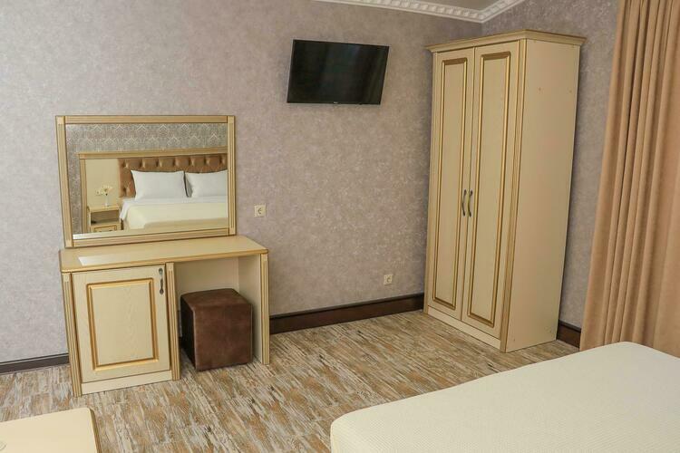 2-х местный стандарт с двумя раздельными кроватями и раскладным диваном. Уютный номер для размещения от 2 до 4 человек. Площадь номера от 20 до 24 м2. В комнате две односпальные кровати, диван, рабочая зона, чайник, ТВ, шкаф, кондиционер. В ванной комнате: фен, душ, санузел, комплект полотенец. В каждом номере нашего отеля работает бесплатный Wi-Fi. Утюг с гладильной доской – на каждом этаже. Периодичность смены постельного белья – 1 раз в 5 суток. Уборка номера – 1 раз в 3 суток