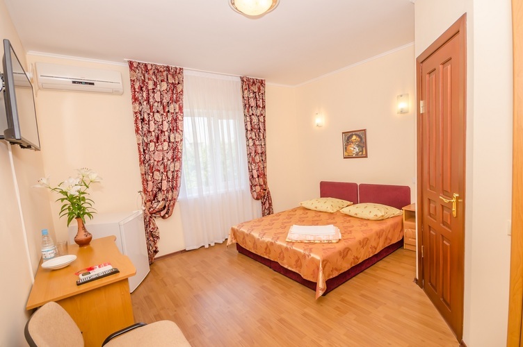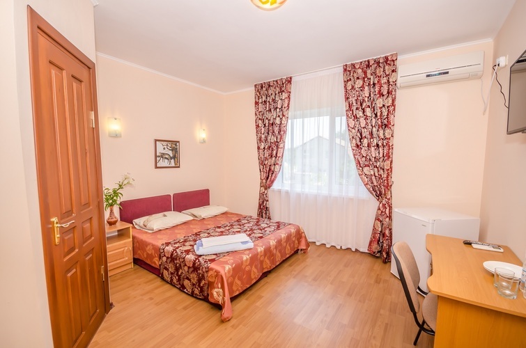 Двухместный Стандарт со всеми удобствами: душ, туалет, телевизор, холодильник, кондиционер, чайник, сейф. Здесь с комфортом разместятся два человека. Также возможно одноместное размещение, со скидкой.