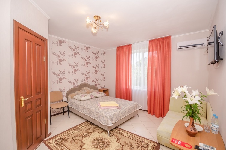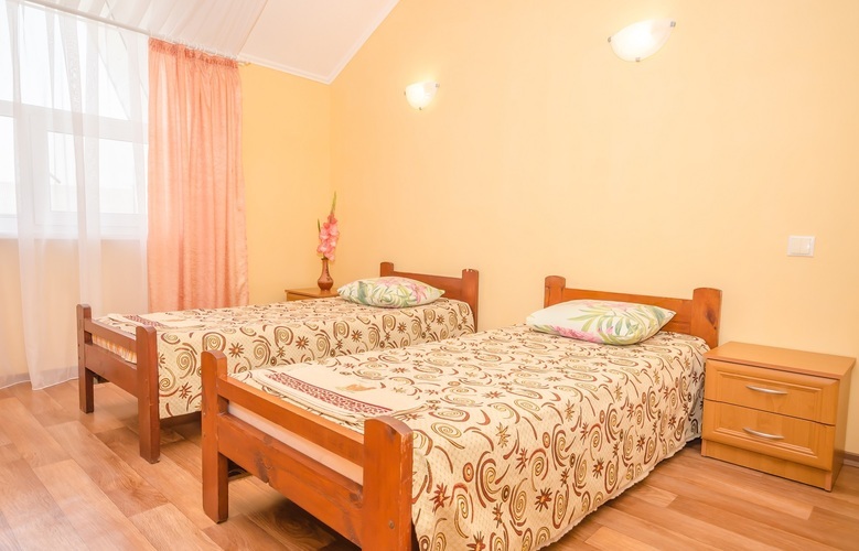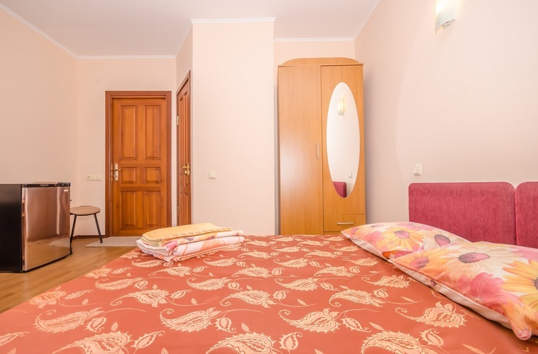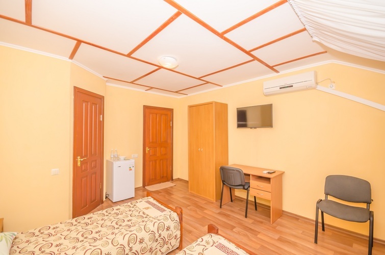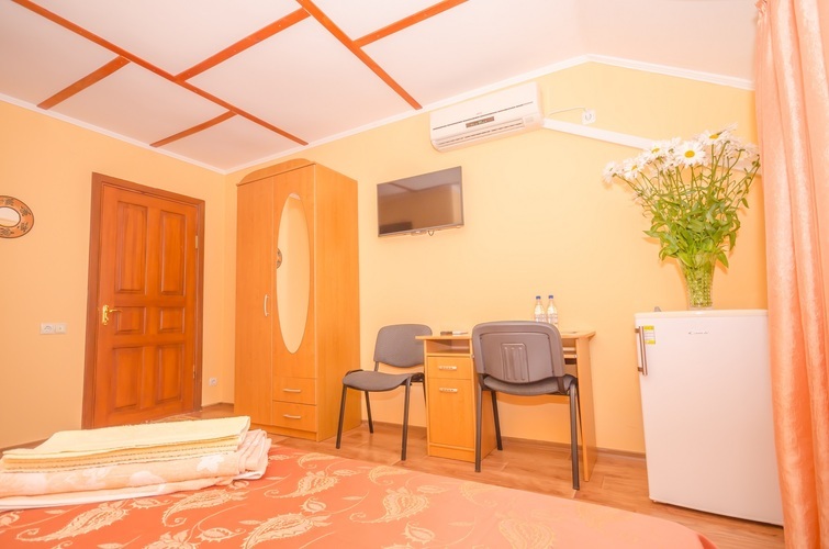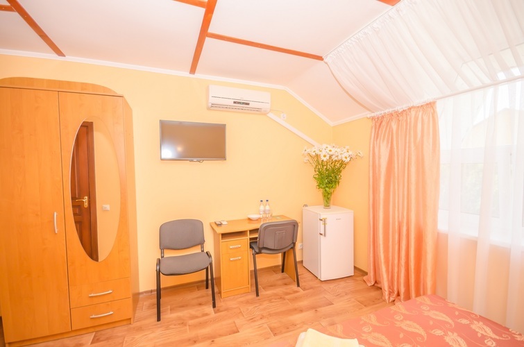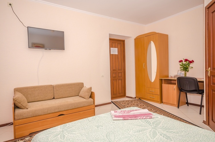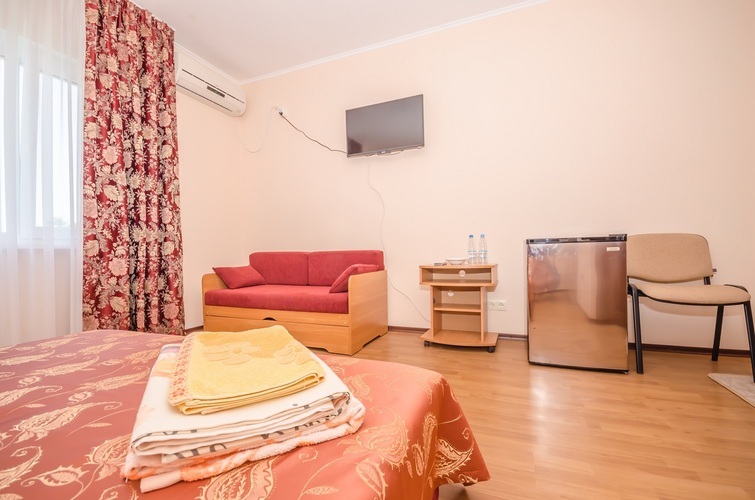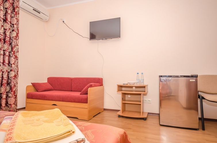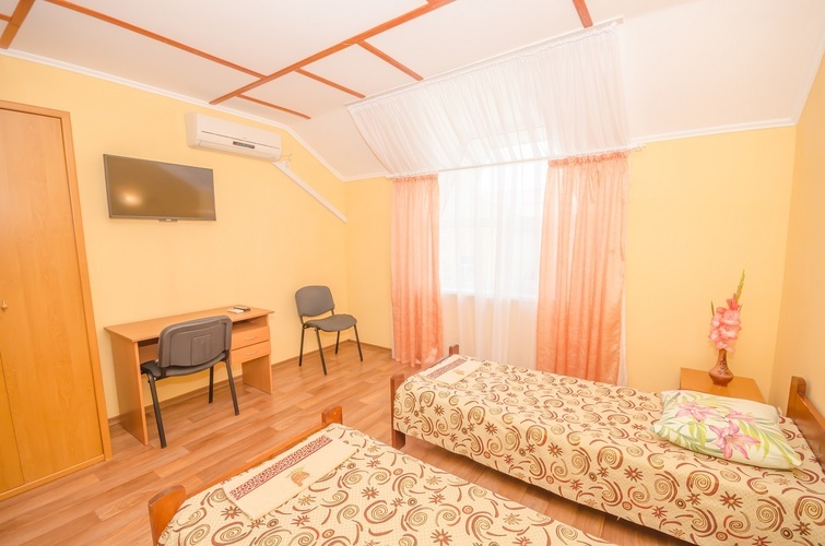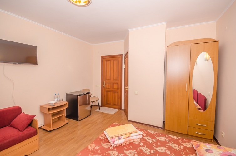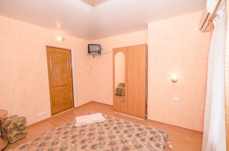 Вместимость: до двух гостей Комнаты класса Эконом расположены на 3 этаже Гостевого дома с отдельным входом по наружной лестнице. Из дополнительных удобств в каждой комнате установлены кондиционер и телевизор. На этаже расположены три душевые кабинки и два туалета, а также холодильник, чайник и сушилка для белья (всего на этаже 6 комнат). Здесь с комфортом разместятся два человека. Также возможно одноместное размещение, со скидкой.