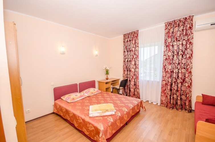 В комнате все удобства: душ, туалет, телевизор, холодильник, кондиционер, чайник, сейф. В комнате двуспальная кровать и дополнительное место (раскладывающийся диванчик или раскладывающееся кресло для ребёнка до 12 лет, или односпальная кровать (если на дополнительном месте взрослый или ребёнок старше 12 лет). Если Ваш ребёнок совсем маленький, мы с радостью предложим для него детскую кроватку/манеж, анти-скользящие подставки в душ, заглушки для розеток, стульчик для кормления в обеденной зоне.