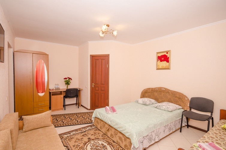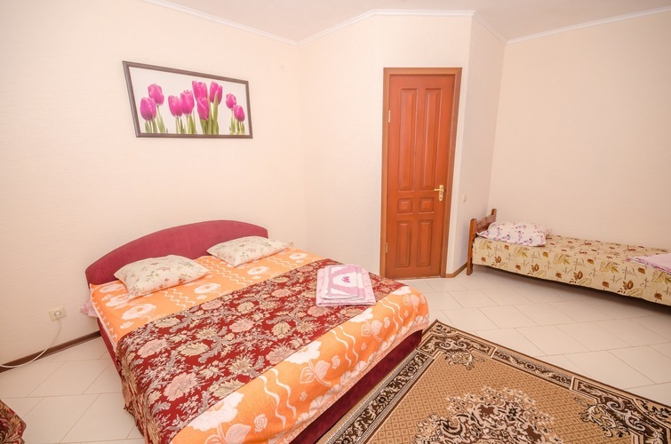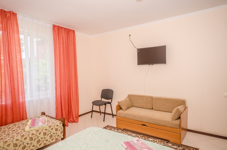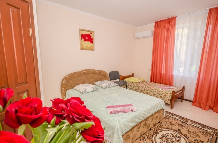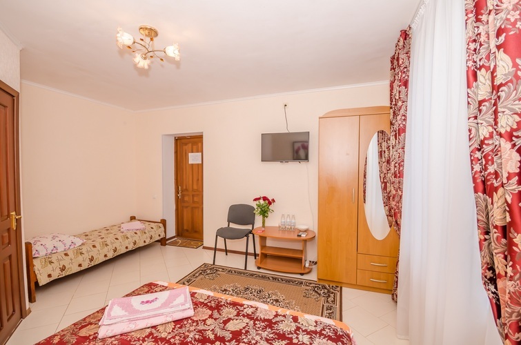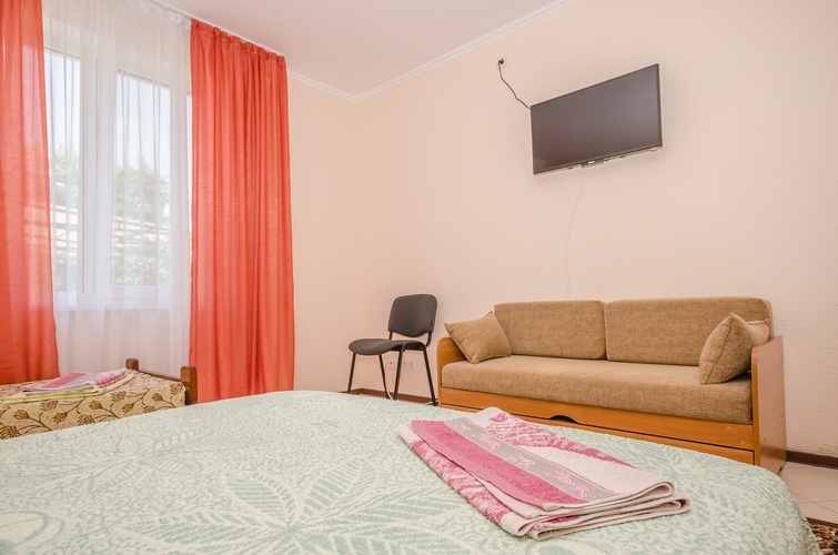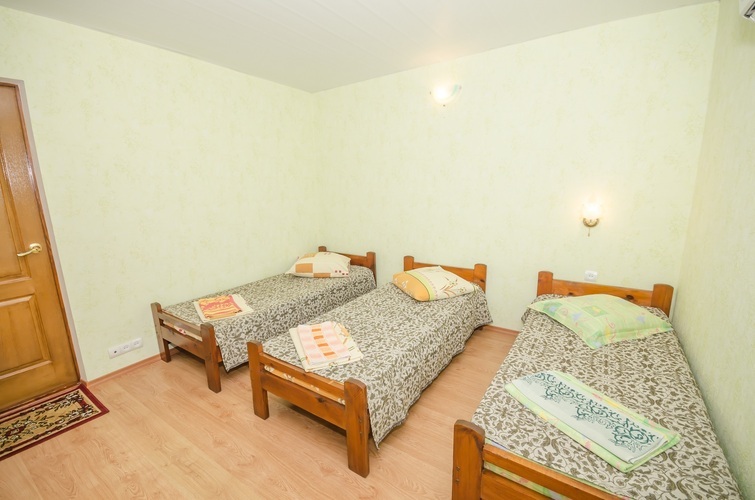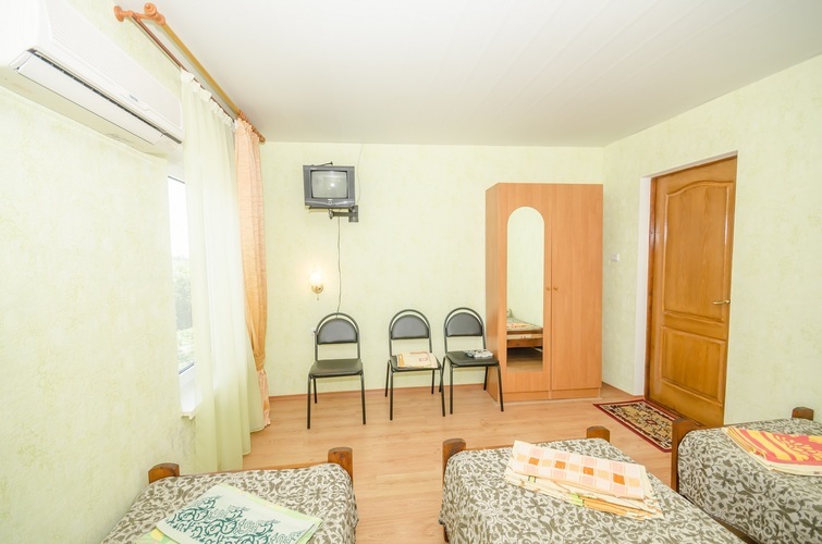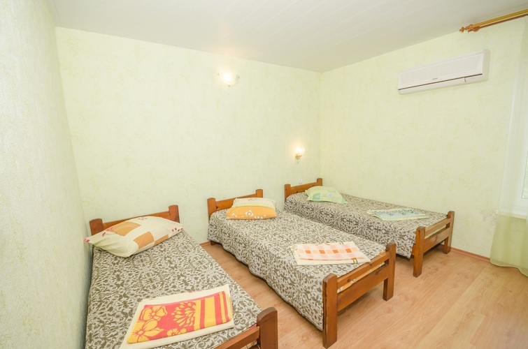Вместимость: до 3 гостей Трёхместный Эконом расположен на 3-м этаже нашего Гостевого дома, с отдельным входом по наружной лестнице. В комнате три односпальные кровати, из дополнительных удобств установлен кондиционер и телевизор. Душевые кабины, туалеты, чайник и холодильник расположены на этаже (всего на этаже 6 комнат). Здесь с комфортом разместятся три человека. Трехместный Эконом отличное решение для бюджетного отдыха в Крыму!