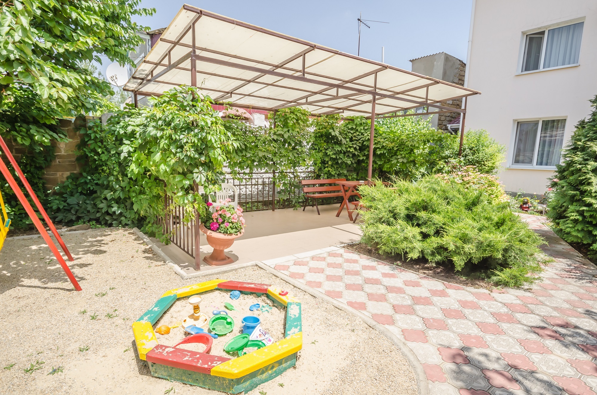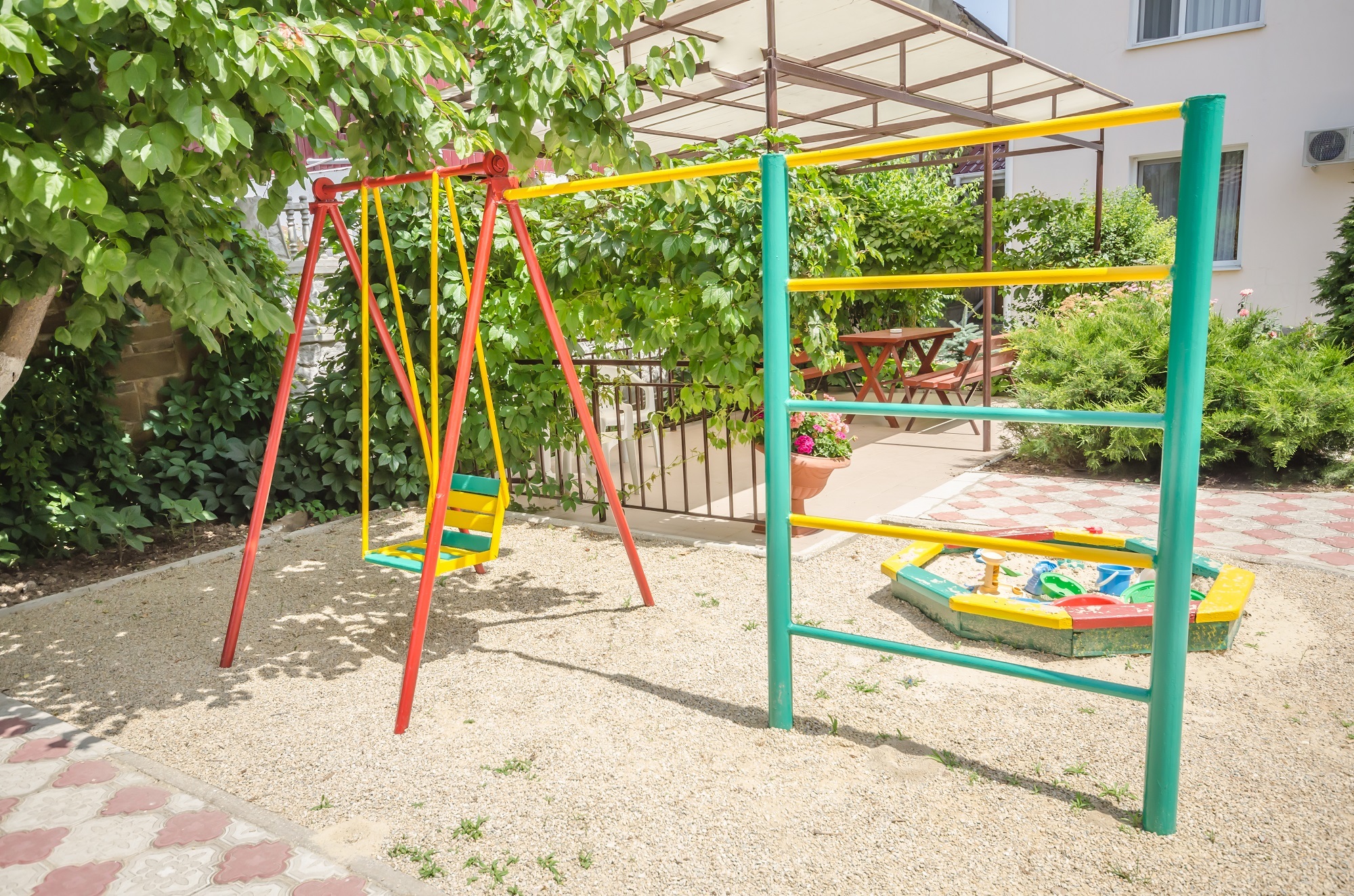 Для наших самых маленьких посетителей предусмотрена детская площадка с качелями и песочницей.