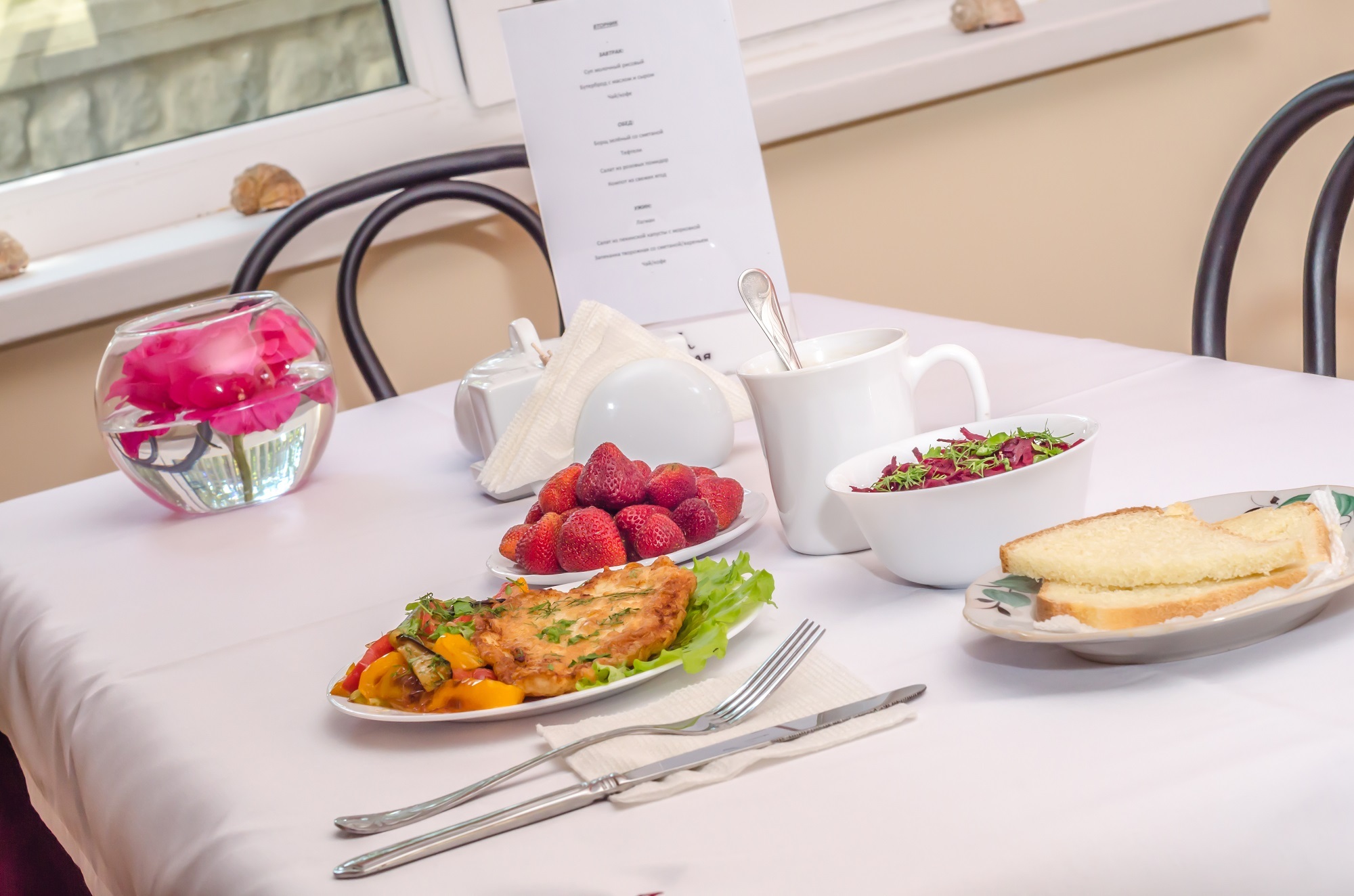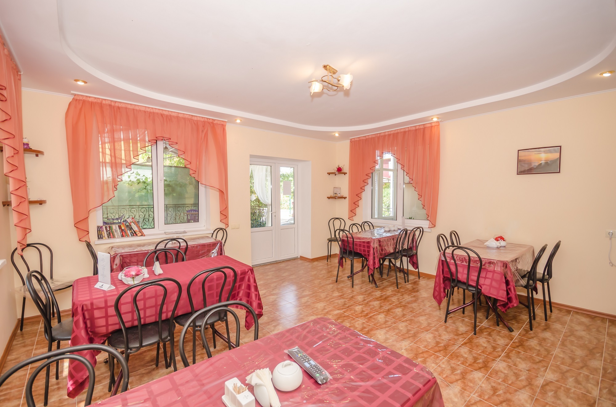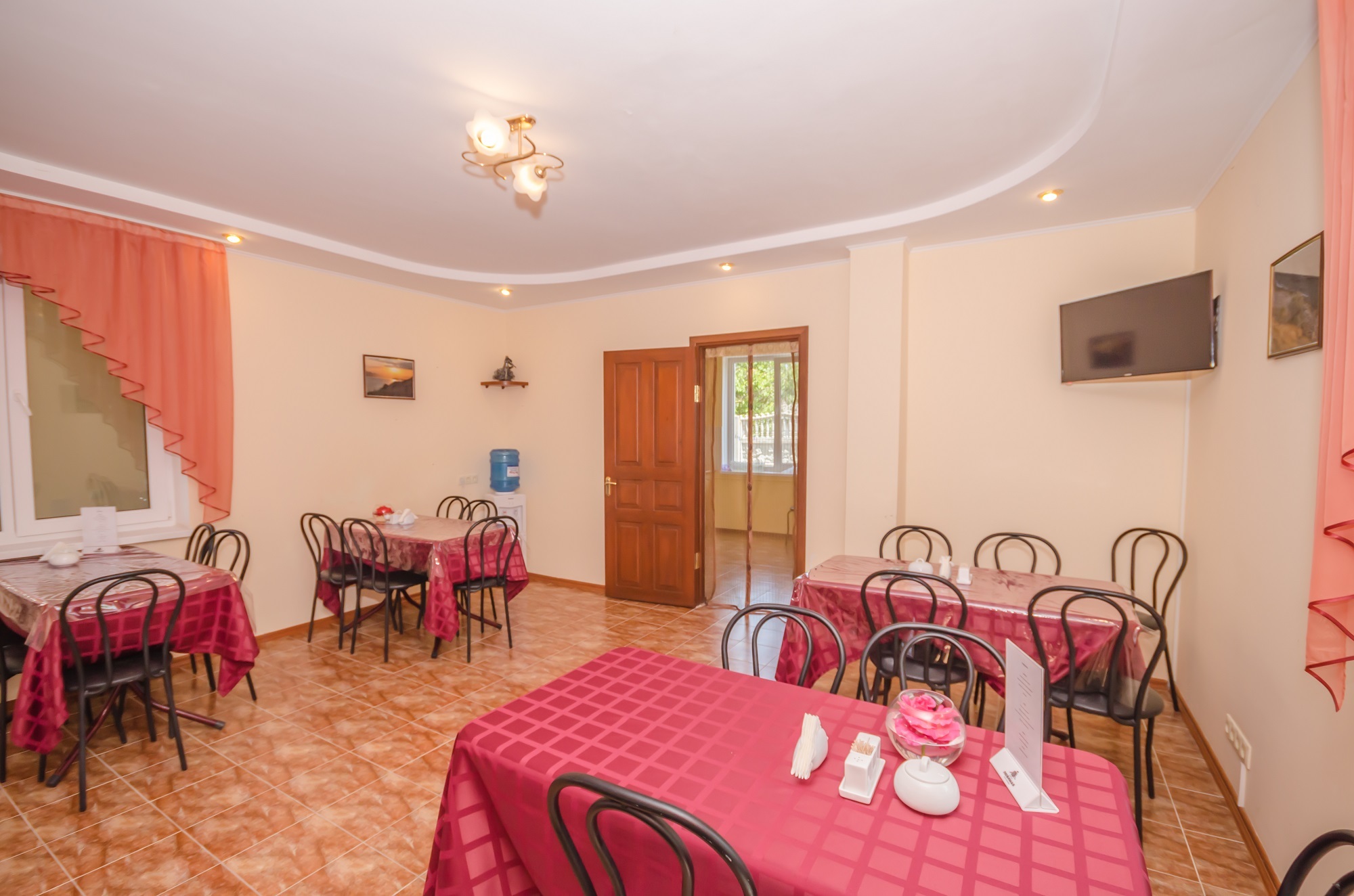 В Вилле на первом этаже есть обеденная зона, где гости могут заказать завтрак, обед или ужин (кейтеринг), для тех гостей, которые ищут отдых с питанием в Береговом.