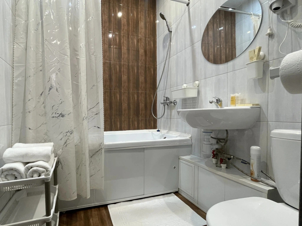 Апартаменты Студия с ванной в новом квартале На Сутки, адрес на карте Биробиджан, улица Широкая, д.16А, с характеристиками номеров и правом онлайн бронирования на площадке ВашОтель.RU , стоимость проживания и удобства.