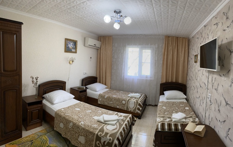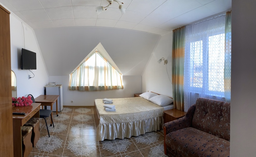 Номер уютно обставлен и оснащён необходимым, чтобы отдохнуть после долгого и насыщенного дня. Имеются телевизор. Перечисленные услуги есть не во всех номерах.