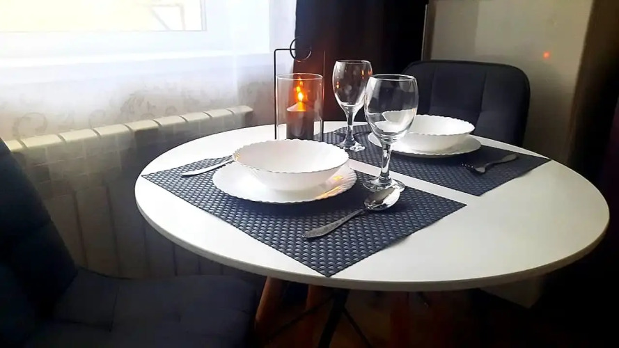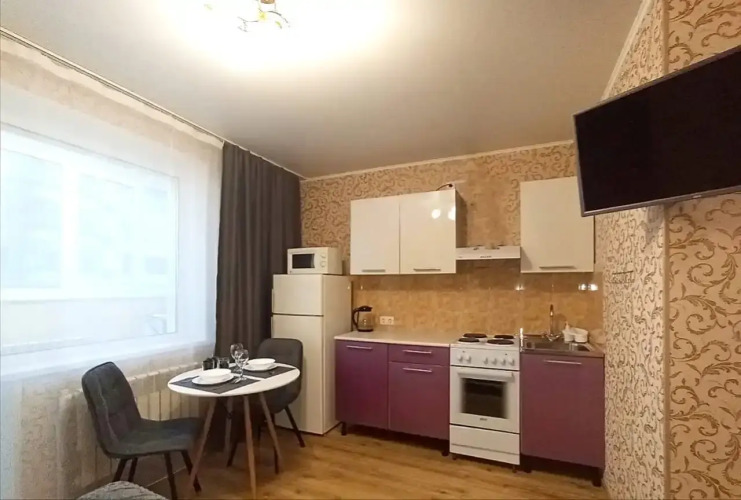 Квартира с автономным отоплением. В квартире могут расположиться до 4 человек, в наличии двуспальная кровать и раскладной двуспальный диван. В квартире есть необходимая бытовая техника: электрическая плита и духовой шкаф, микроволновая печь, холодильник, электрический чайник, стиральная машина-автомат, фен, утюг, гладильная доска, посуда для приготовления и приёма пищи. Smart-TV, работает высокоскоростной Wi-Fi. Предоставляется постельное бельё и полотенца. Средства гигиены и моющие средства.