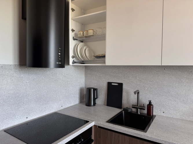 В квартире есть рабочее место, быстрый Wi-Fi, кондиционер на кухне, стиральная машина, посудомоечная машина, электрическая плита, кофемашина, чайник и микроволновая печь. Имеется смарт-телевизор, колонка с голосовым управлением, фен, полотенца, водонагреватель, гигиенический душ, утюг, гладильная доска и шторы blackout. Для сна установлена кровать с ортопедическим матрасом. Предусмотрены средства для гигиены: шампунь, кондиционер, гель для душа и мыло для рук. В распоряжении гостей также кухонная и бытовая техника, а также стандартный набор — чай, вода, капсулы для кофе, капсулы для стирки и посудомоечной машины. Для гостей подготовлен гайд по Чебоксарам с перечнем маршрутов и объектов города.