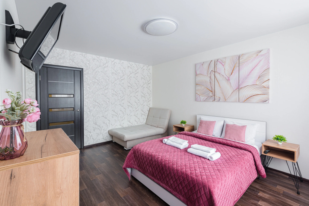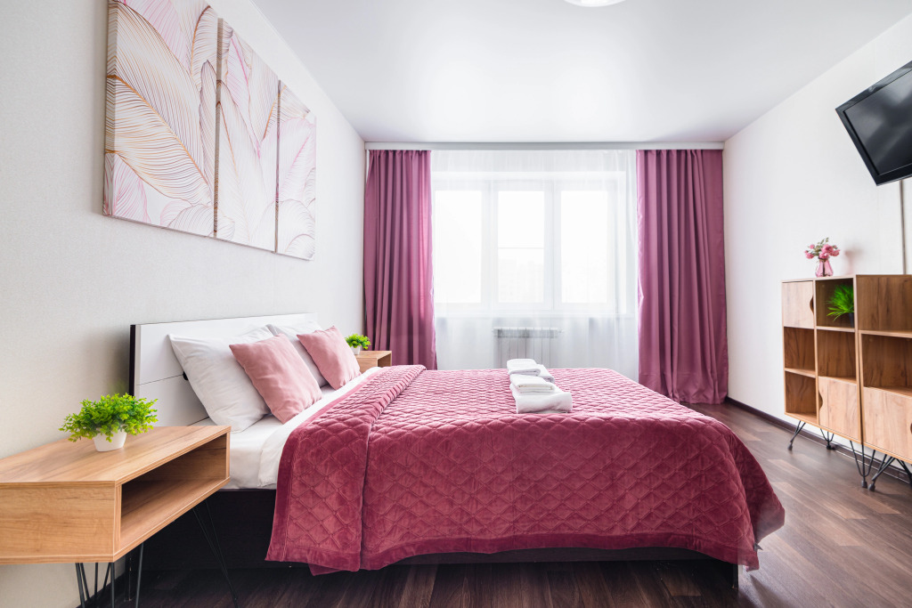 В стоимость квартиры входит два двуспальных постельных комплекта. Каждый дополнительный комплект доступен за доплату 500.00 RUB в сутки.