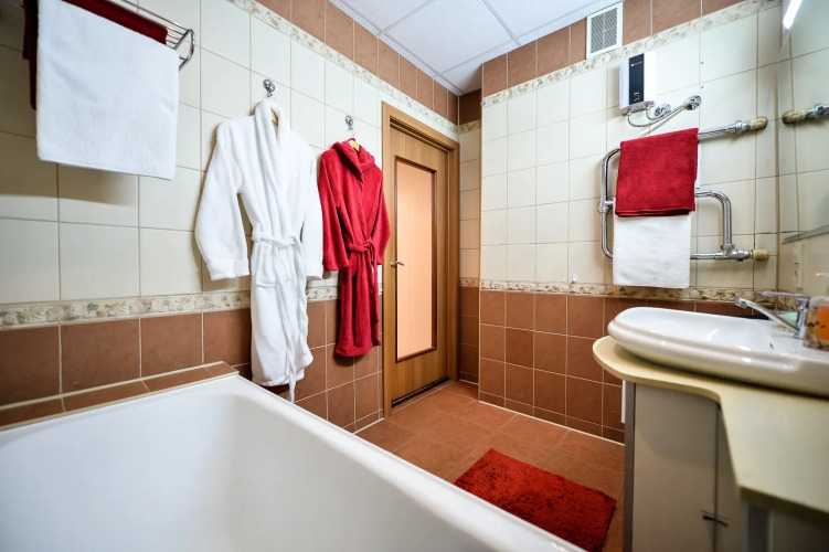 В номере вас будут ждать телевизор и халат. Оснащение зависит от выбранной категории номера.