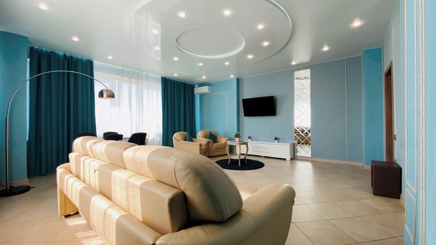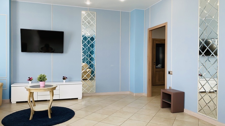 Апартаменты оснащены по наивысшему классу: помимо "стандартного набора" бытовой техники здесь есть изысканная круглая двуспальная кровать с LED-подстветкой, мягкая кожаная мебель в гостиной. Своеобразной изюминкой является возможность для любителей SPA-процедур, не покидая апартаментов, побаловать себя посещением встроенной САУНЫ и насладиться гидромассажем в двухместной ванной - ДЖАКУЗИ. Что может быть лучше, чем совмещение деловой поездки с размещением на эксклюзивной территории комфорта.