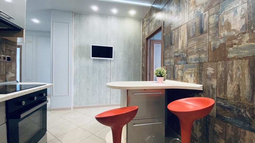 Изюминка-из просторных окон и лоджии как на ладони видны все достопримечательности центра города- Цирк, Филармония, ЧелябинскСити, Органный Зал, Краеведческий Музей, набережная реки с LED-фонтаном, Колесо Обозрения, Торговый Центр, "Кировка", и конечно же потрясающий вид на салют! Просторная гостиная с многоуровневой системой освещения и мягкой мебелью, письменным столом, журнальным столом, телевизором, кондиционером. Кухонная зона-гарнитур со встроенной бытовой техникой и наборами посуды.