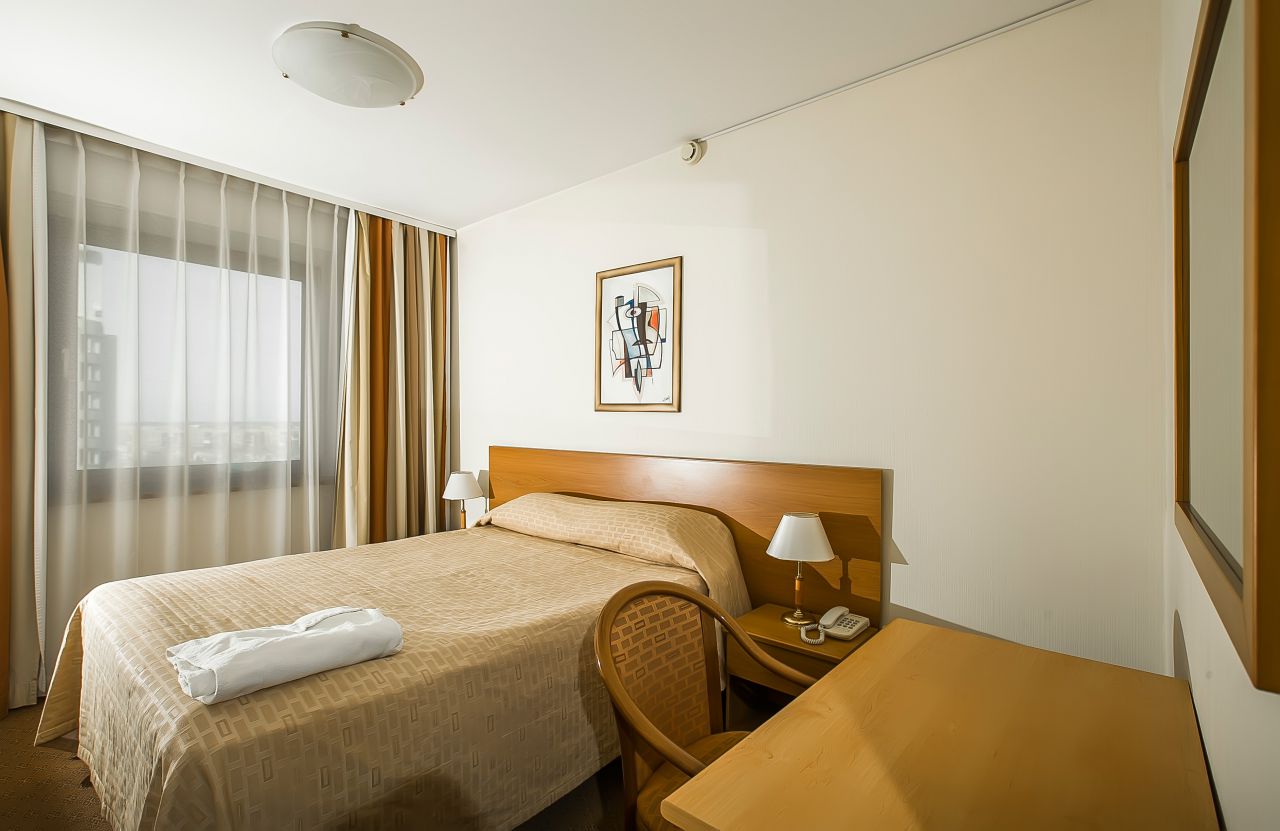 Просторный 2-х комнатный номер - 2 спальни и кухня. Идеально подходит для семейного отдыха и гостей, остановившихся в отеле на длительный период. Оборудован: кровати 110 см*200 см и 160 см*200, ванная, мини-бар, спутниковое ТВ, прямая международная телефонная линия, Wi-Fi-доступ в Интернет, кондиционер.