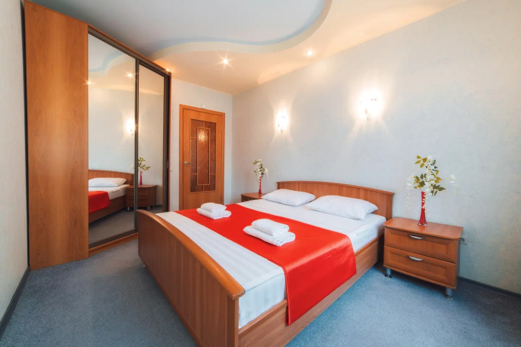 В номере гостей ждут телевизор и халат. Оснащение зависит от выбранной категории номера.