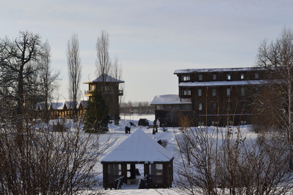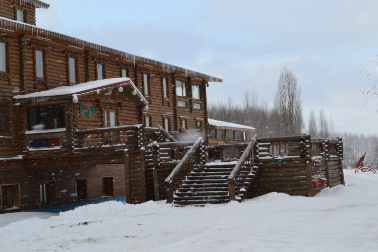 Въезд на лыжах на территорию отеля