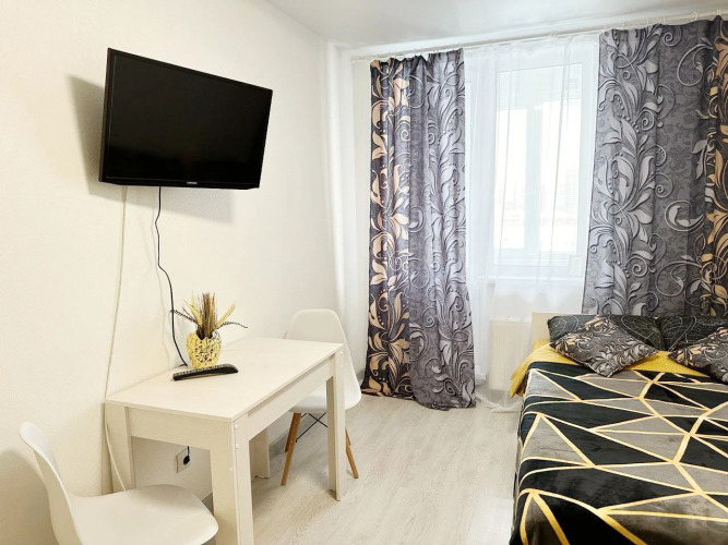 Апартаменты Уютная студия рядом с м. Девяткино, адрес на карте Мурино, проспект Авиаторов Балтики, д.25, с характеристиками номеров и возможностью онлайн бронирования на площадке ВашОтель.RU , цены проживания и удобства.