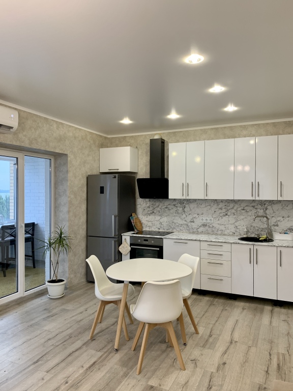 В квартире есть кухня, гостиная с раскладным диваном, отделённая зона спальни с двуспальной кроватью, балкон и ванная комната. На всех окнах установлены шторы блэкаут. В апартаментах есть Wi-Fi.