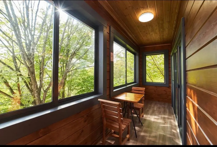 Отель состоит из трёх корпусов по 4 номера в каждом. На территории отеля есть бесплатный WI-FI, парковка, площадка для занятий йогой, гамак, детские качели и уголок для малышей. Для гостей предоставляются три мангальные зоны и принадлежности к ним, три закрытые беседки, две из которых платные. Рядом с отелем есть озеро, где можно порыбачить. В двух корпусах расположены кухни для самостоятельного приготовления пищи, где есть все необходимые электробытовые приборы и посуда. По запросу гостей есть услуги прачечной. В отеле могут предоставить контакты конных прогулок, джипинга, проката квадроциклов.