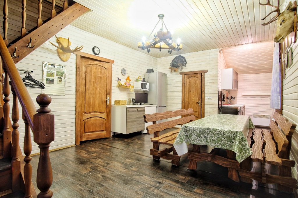 На территории есть бесплатная парковка, баня с теннисным столом и караоке, детская площадка, спортивная площадка, батут для детей, велосипеды. У каждого дома есть беседка или терраса, а также мангальная зона. Возможно размещение с питомцами, но по предварительному и обязательному согласованию, предусмотрена доплата за животных.