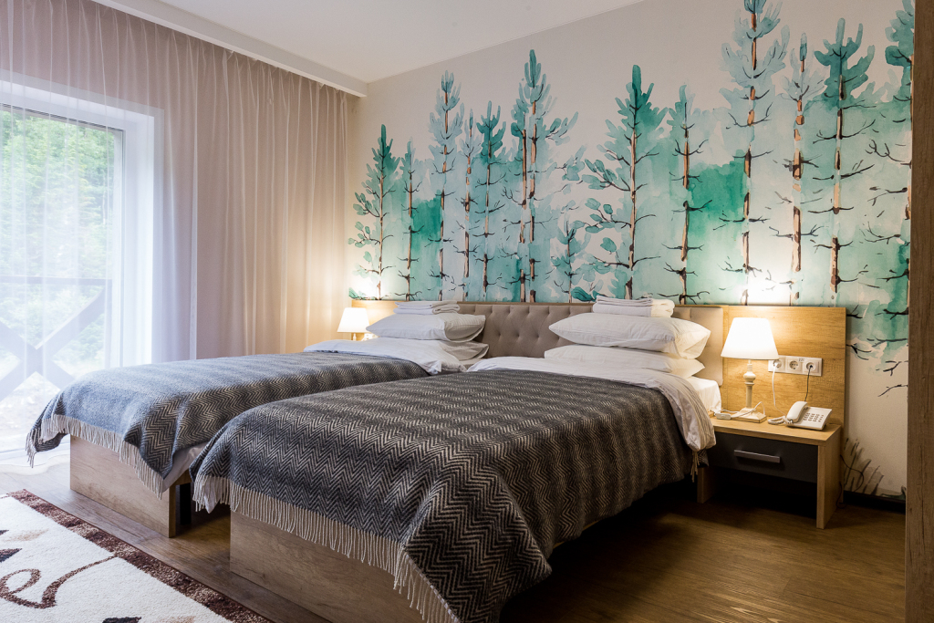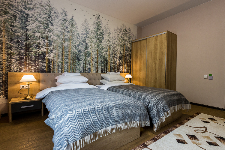 Номер уютно обставлен и оснащён необходимым, чтобы отдохнуть после долгого и насыщенного дня. Имеются телевизор и халат. Оснащение зависит от выбранной категории номера.