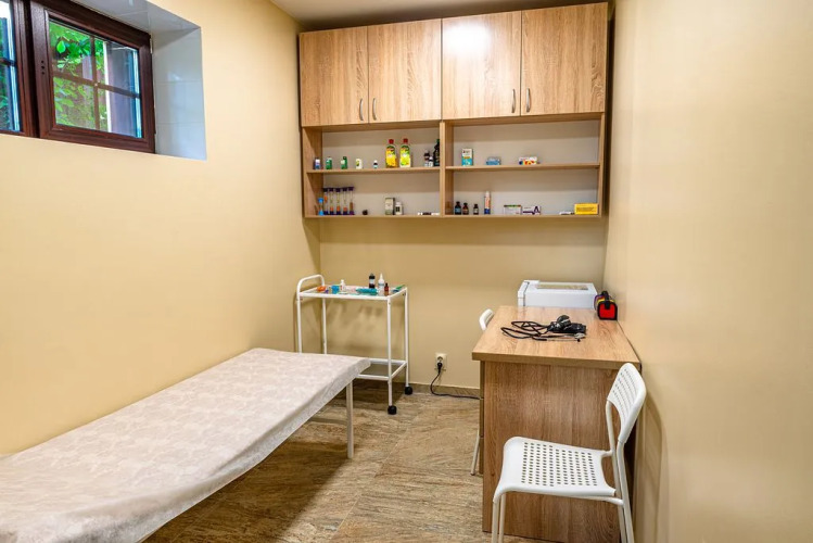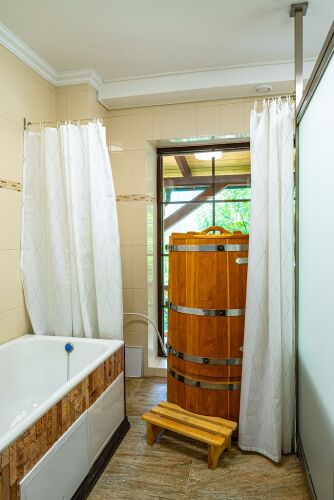 Также для гостей в отеле: массажный кабинет, сауна, спа-центр и баня. Любителям спорта подготовили тренажёрный зал. Готовьтесь к весёлому и насыщенному отдыху! На территории есть площадка для барбекю. Здесь будем баловать себя водными процедурами: есть открытый бассейн.