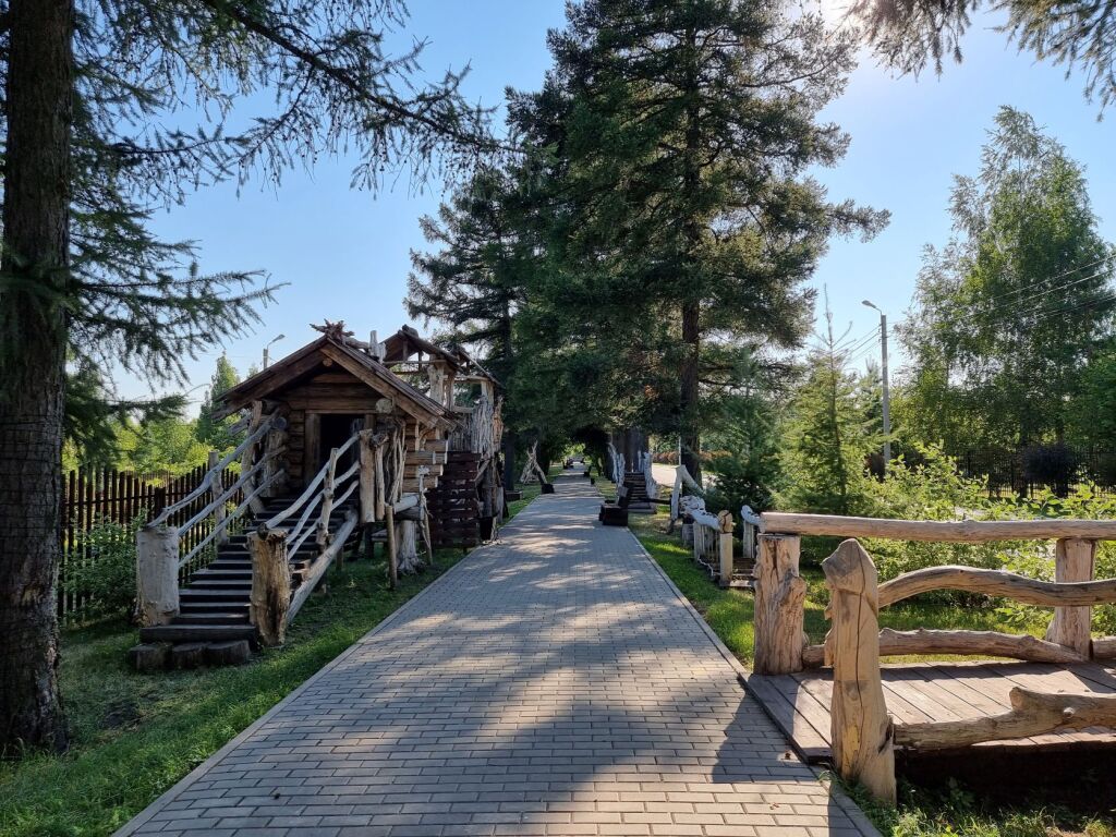 На ухоженной и охраняемой территории отеля есть акватория с подогреваемым бассейном, песчаным пляжем и несколькими водоёмами, спортивные и детские площадки, верёвочный парк, ростовые шахматы, шатёр для торжеств с пирсом и видом на водоём, ресторан «Барин» и банкетный зал, сибирский банный чан под открытым небом, игровая комната и настольный теннис, лиственничная аллея с фонтаном, деревянными скульптурами, беседками и тематической детской площадкой. Гостям также доступны конные прогулки и прокат летнего и зимнего инвентаря.