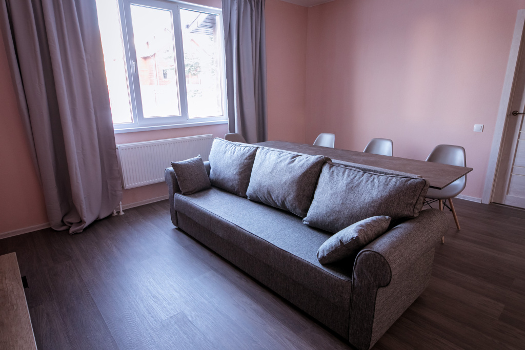 Дом оснащен удобствами для проживания 6-ти человек. В доме: прихожая, гостиная, кухня, санузел, 3 спальни с двуспальными кроватями, ванная комната. Комплектация: телевизор, диван, обеденный стол, мини-кухня, холодильник, микроволновая печь, индукционная плита, чайник, комплект посуды. Дом имеет собственную территорию, на которой установлен мангал.