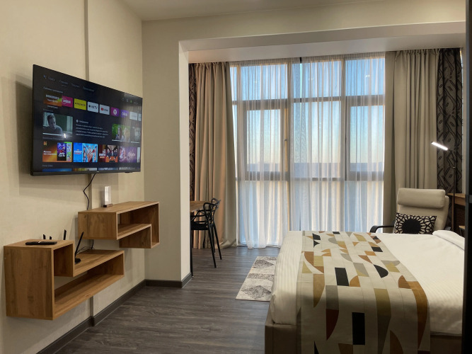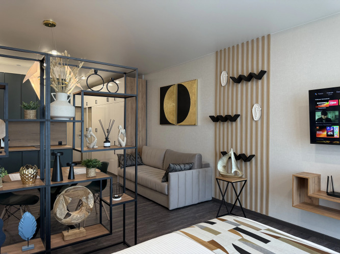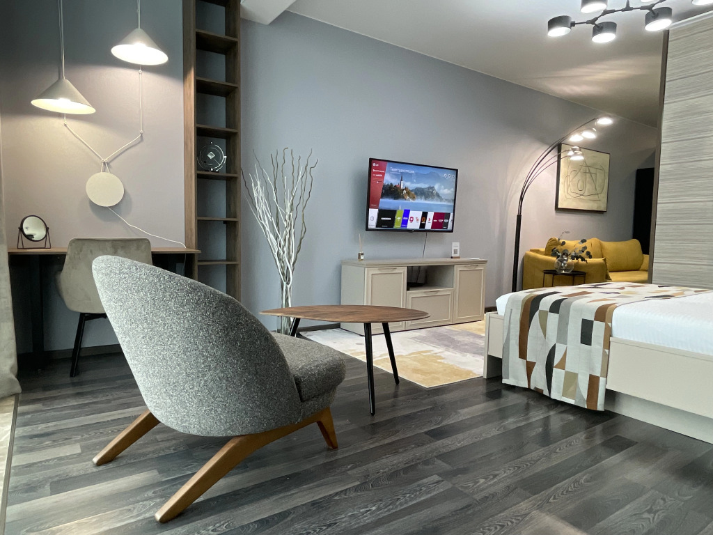 Апартаменты PK Design в Сколково, адрес на карте Novoivanovskoe, Овражная улица, д.47А, с характеристиками номеров и доступностью онлайн бронирования на ресурсе vashotel.ru , цены проживания и удобства.