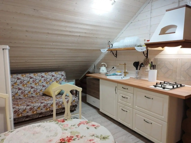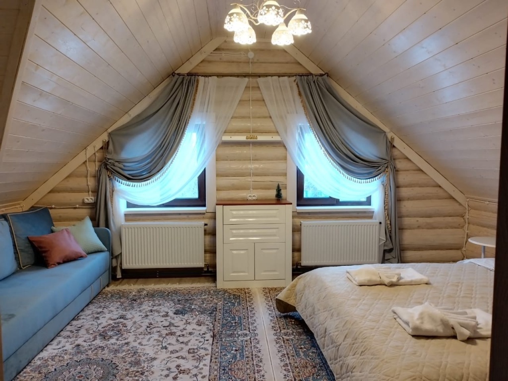 Для проживания предоставляется двухэтажный дом с оборудованной кухней, санузлом, а также интерьером с натуральными тканями и деревянной мебелью. Гостям доступны 4 спальни. В двух спальнях расположены две односпальные кровати и письменный стол, а в других двух спальнях — одна двуспальная кровать и диван-кровать для двух гостей.