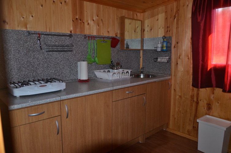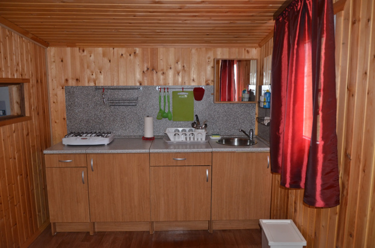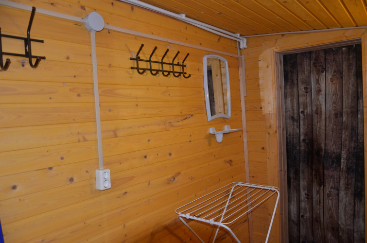 В домике две спальни, где могут расположиться гости, кухня, раздельный санузел и сушильная комната.