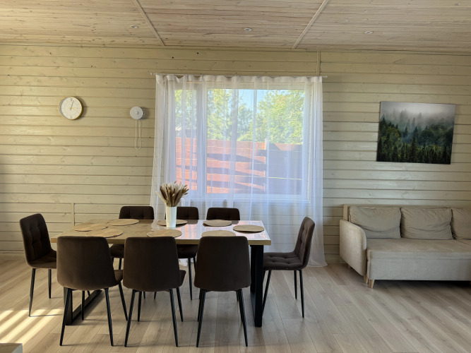 Скучно не будет, ведь в коттедже к услугам отдыхающих площадка для пикника и площадка для барбекю. Здесь рады животным. Допускается размещение с питомцами за дополнительную плату. Сотрудники коттеджа по запросу организуют гостям трансфер. А ещё в распоряжении гостей гладильные услуги.