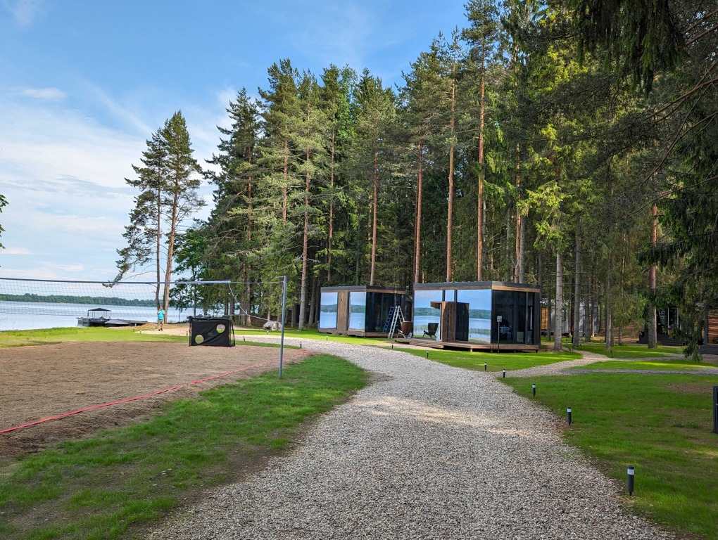 В отеле 11 отдельных домиков в лесу. Дома отличаются по дизайну, при этом выдержан северный стиль. Все дома имеют террасу, панорамные окна с видом на водную гладь озера Селигер.
