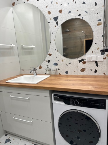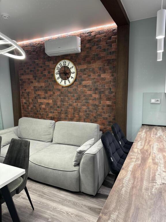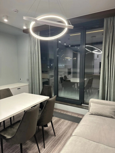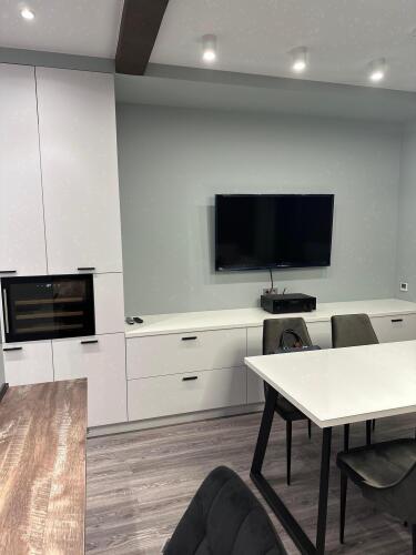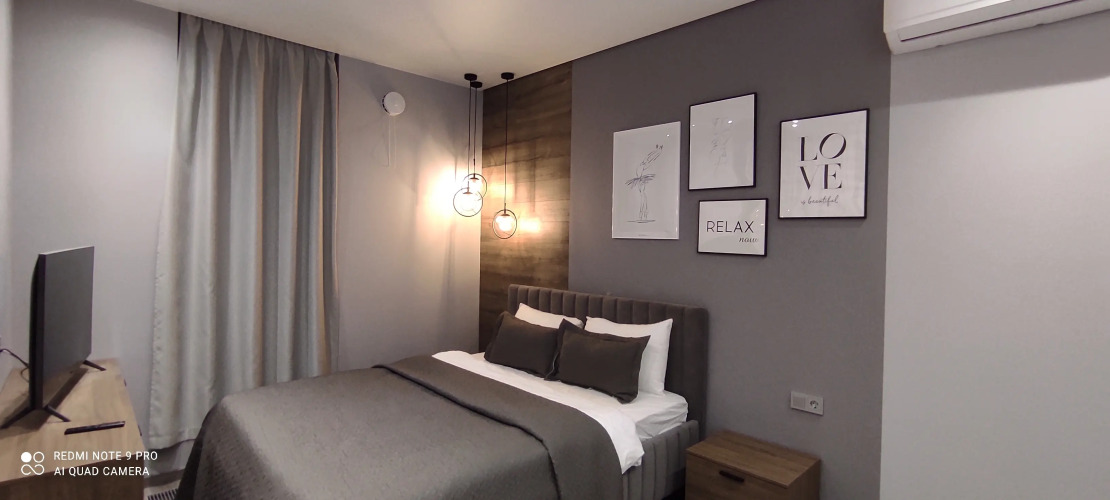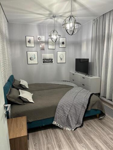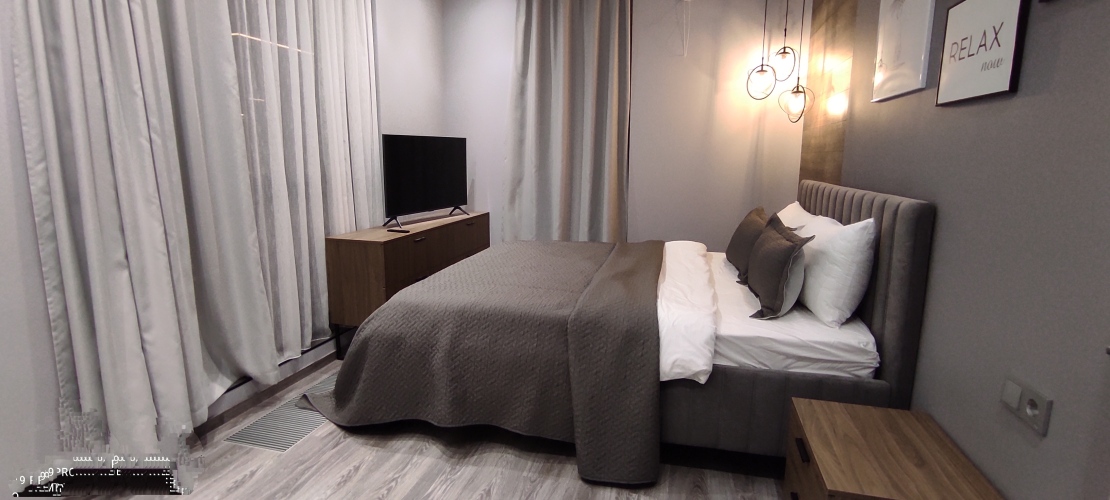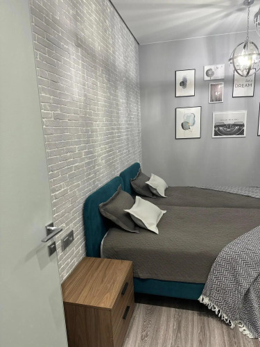 В апартаментах к услугам гостей полноценная кухня, оборудованная всей необходимой техникой и посудой, 2 спальни — одна с двуспальной кроватью, вторая с двумя односпальными кроватями, санузел с душевой, полноценный холодильник, стиральная машина, телевизор с ЖК экраном, Wi-Fi, собственная сауна. В гостиной расположен диван-кровать. Апартаменты укомплектованы постельным бельём, полотенцами, предметами личной гигиены.