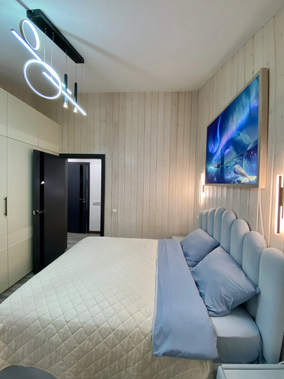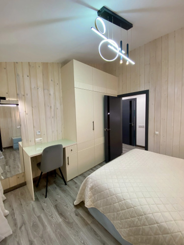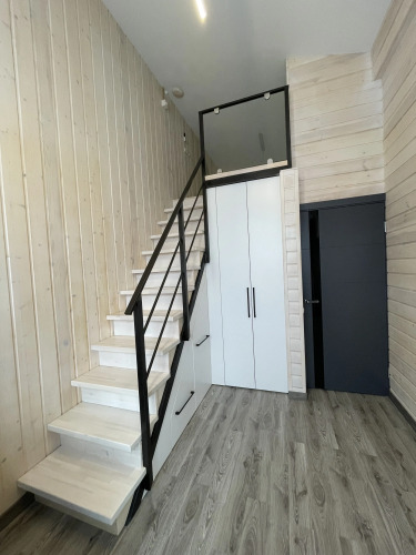 Коттедж состоит из 3 этажей и 3 спален. Одна из спален занимает два этажа с лестницей, ведущей на мансардный этаж. Вторая и третья спальни оснащены двуспальными кроватями, шкафами, прикроватными тумбами и рабочими столами.