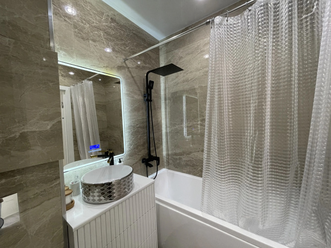 В номере вы найдёте телевизор и халат. Оснащение зависит от выбранной категории номера.