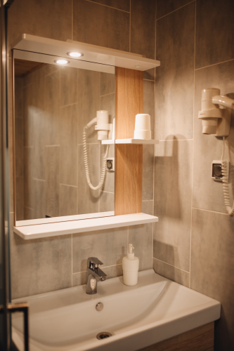 В номере имеется телевизор. Оснащение зависит от выбранной категории номера.