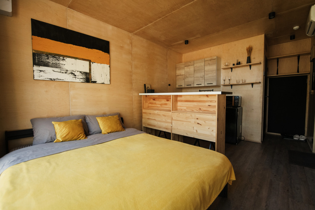 Для комфорта гостей в домах мини-кухня с холодильником, микроволновой печью, чайником и посудой, система отопления пола, установлены кровати с ортопедическими матрасами, светоблокирующие шторы, имеются телевизор, кондиционер, конвектор, бризер, москитные сетки.