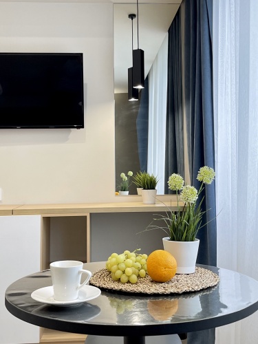 Номер уютно обставлен и оснащён необходимым, чтобы отдохнуть после долгого и насыщенного дня. Имеются телевизор. Оснащение зависит от выбранной категории номера.