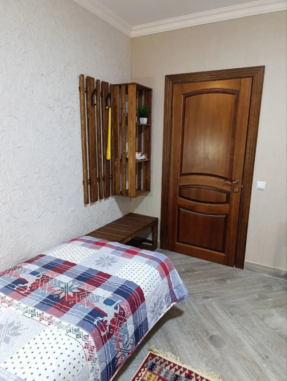 Апартаменты оборудованы для проживания до двух гостей. В апартаментах имеется санузел, 2 односпальные деревянные кровати с ортопедическими матрасами 90х200см., гипоаллергенные подушки, шерстяные одеяла, бактерицидный рециркулятор для обеззараживания воздуха, телевизор с функцией Smart ТV, Wi-Fi, сушилка для обуви, туалетные принадлежности, сенсорное мусорное ведро, фен для волос.