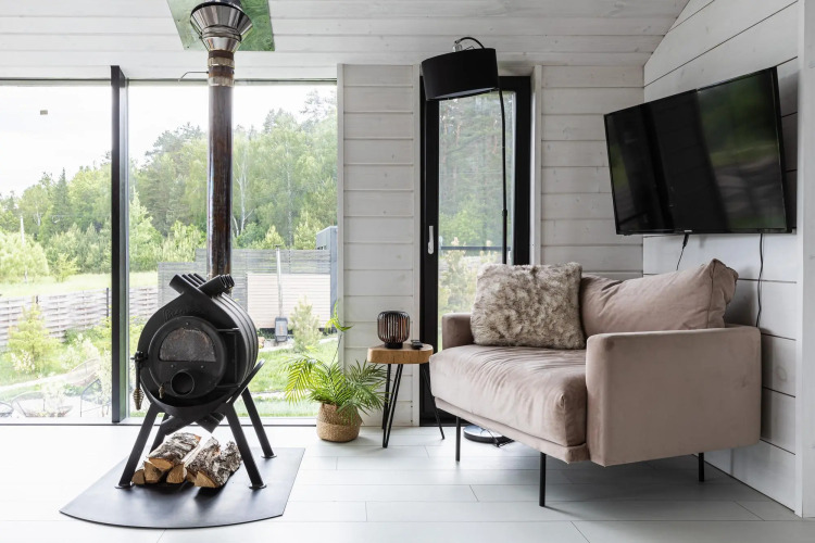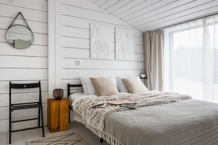 Дом рассчитан на размещение до 8 человек. В доме есть три отдельные спальни, кухня-гостиная с диваном-кроватью, санузел с ванной, терраса. Кухня оснащена бытовой техникой и посудой. Гостям предоставляются постельное бельё, полотенца и мыльные принадлежности. Есть акустическая колонка с искусственным интеллектом.
