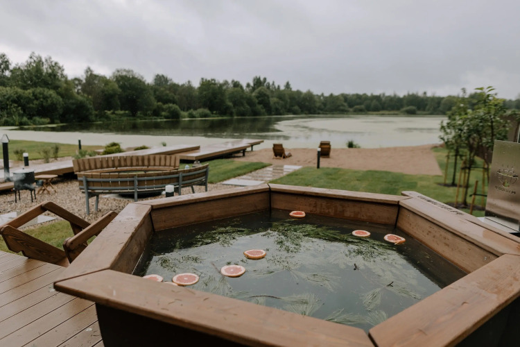 Банный комплекс «Дом и Озеро» — это релакс-пространство площадью 15 кв. м. В наличии: классическая баня на дровах, парная с видом на озеро с берёзовыми и дубовыми вениками, душ и косметические средства, зона отдыха после парения с мебелью и травяным чаем, горячая купель на террасе бани, банный текстиль: халаты, простыни и шапочки.