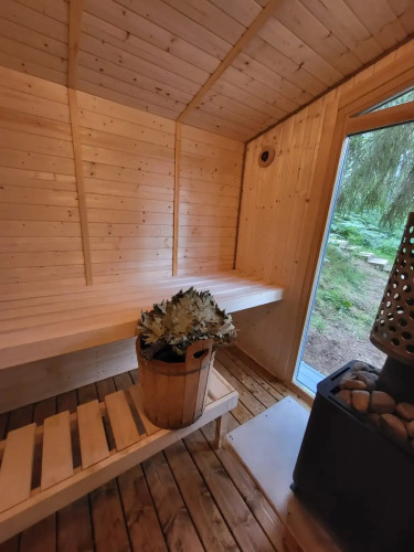 На территории виллы расположена баня: помещение для отдыха, душевая кабина, парная с панорамным окном, дрова и березовые веники. Также на территории виллы гости могут поиграть в баскетбол и бадминтон — в наличии баскетбольное кольцо, мячи, ракетки.
