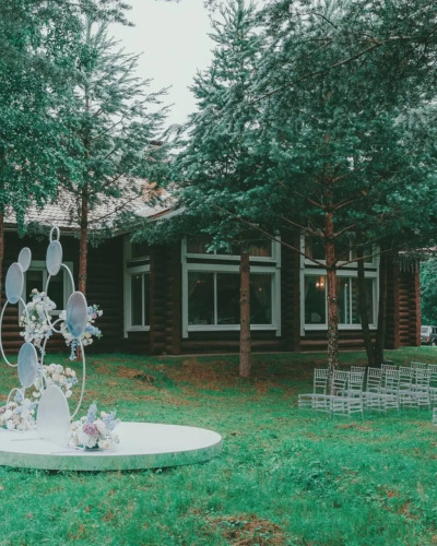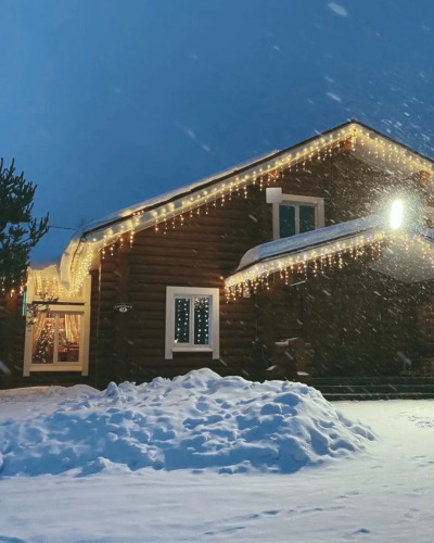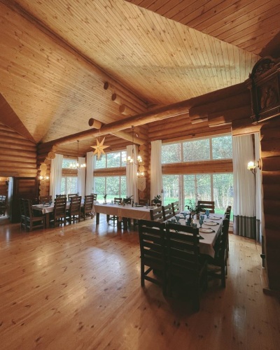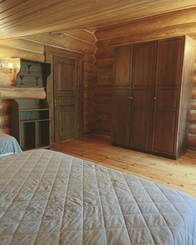 Гостевой дом «Салма» построен из сосновых брёвен. Его площадь — 450 кв. м. В доме находится 5 спален с возможностью размещения до 18 гостей.