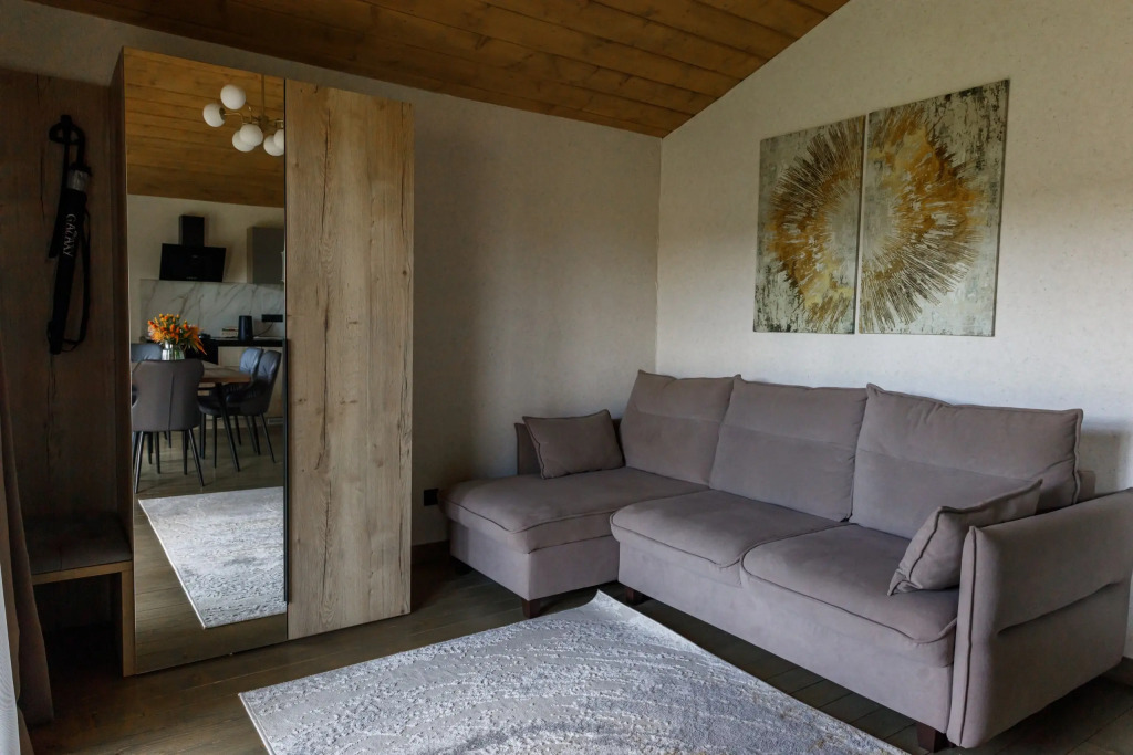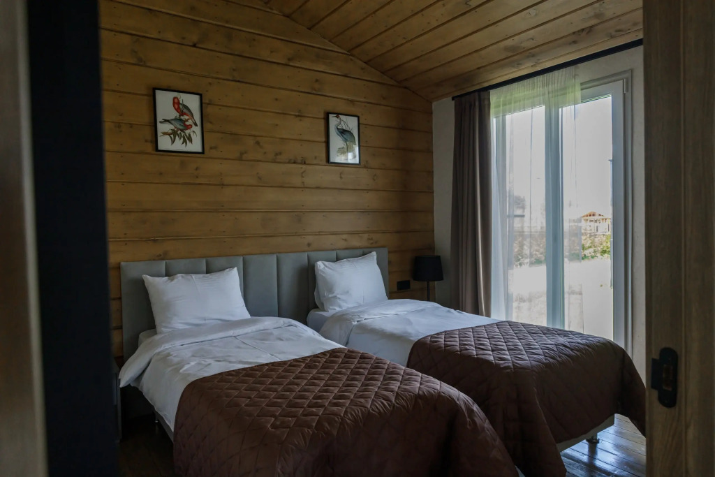Частный дом подходит для проживания 1-6 человек. В доме имеется двуспальная кровать 160х200 с ортопедическим матрасом и две односпальные кровати 90х200 с ортопедическими матрасами и диван-кровать. Кухня оборудована кухонными принадлежностями и посудой. Ванная комната оснащена душем. Также предоставляется круглосуточная доставка продуктов и еды из ближайших магазинов и кафе.