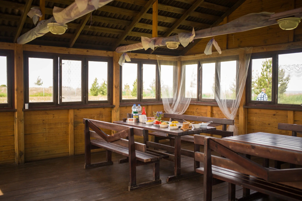 Гостям предоставлены 7 домов с оборудованными кухнями и спальнями, а также индивидуальной мангальной зоной.
