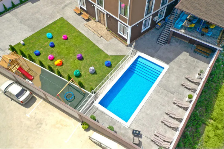 Выбор туристов, путешествующих с семьёй: апартаменты «Аппарт Вилладж» располагаются в Верхневесёлом. Эти апартаменты находятся в самом центре города. Утром — выпейте кофе, наблюдая из окна за жизнью города. Рядом с апартаментами можно прогуляться. Неподалёку: Олимпийский парк, Смотровая башня горы Ахун и Крепость Абаата.