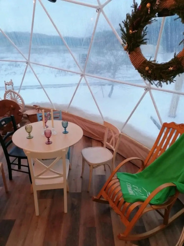 К услугам гостей представлены сферы с авторским дизайном и панорамным видом на лес, озеро или закат. Сферы Комфорт дополнительно оснащены мини-баром с наполнением.