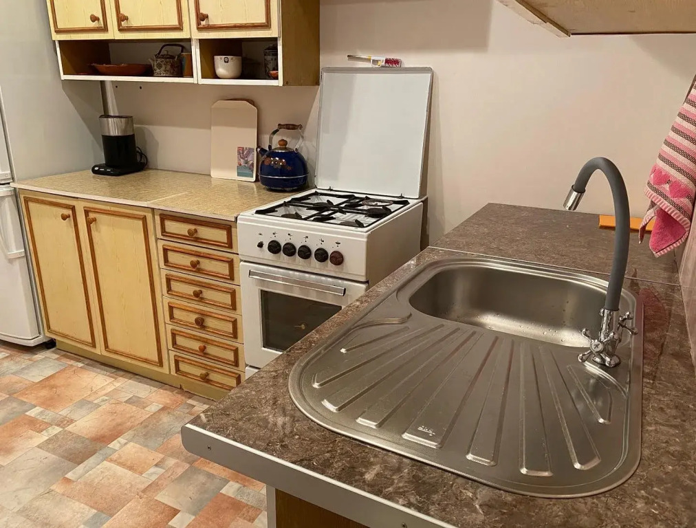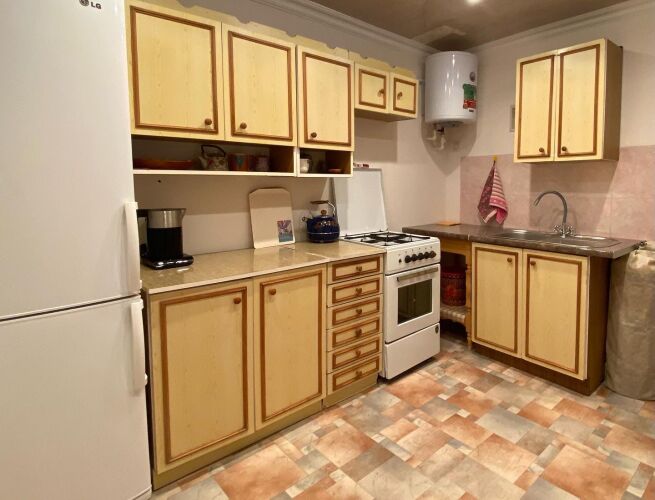 На территории 2 дома, сдаётся один дом в индивидуальное пользование. В доме организовано 10 спальных мест: в 1-й комнате - 4 спальных места, во 2-й и 3-й комнатах – по 3 спальных места. В доме имеются оборудованная кухня, ванная комната, установлены кондиционер, телевизор.