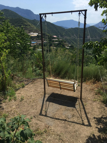 На территории имеются парковка, плодоносящий сад, садовые террасы с обзором на окрестности, на террасе под навесом также обустроено спальное место. Во дворе гостевого дома установлены мангал, самовар, качели.